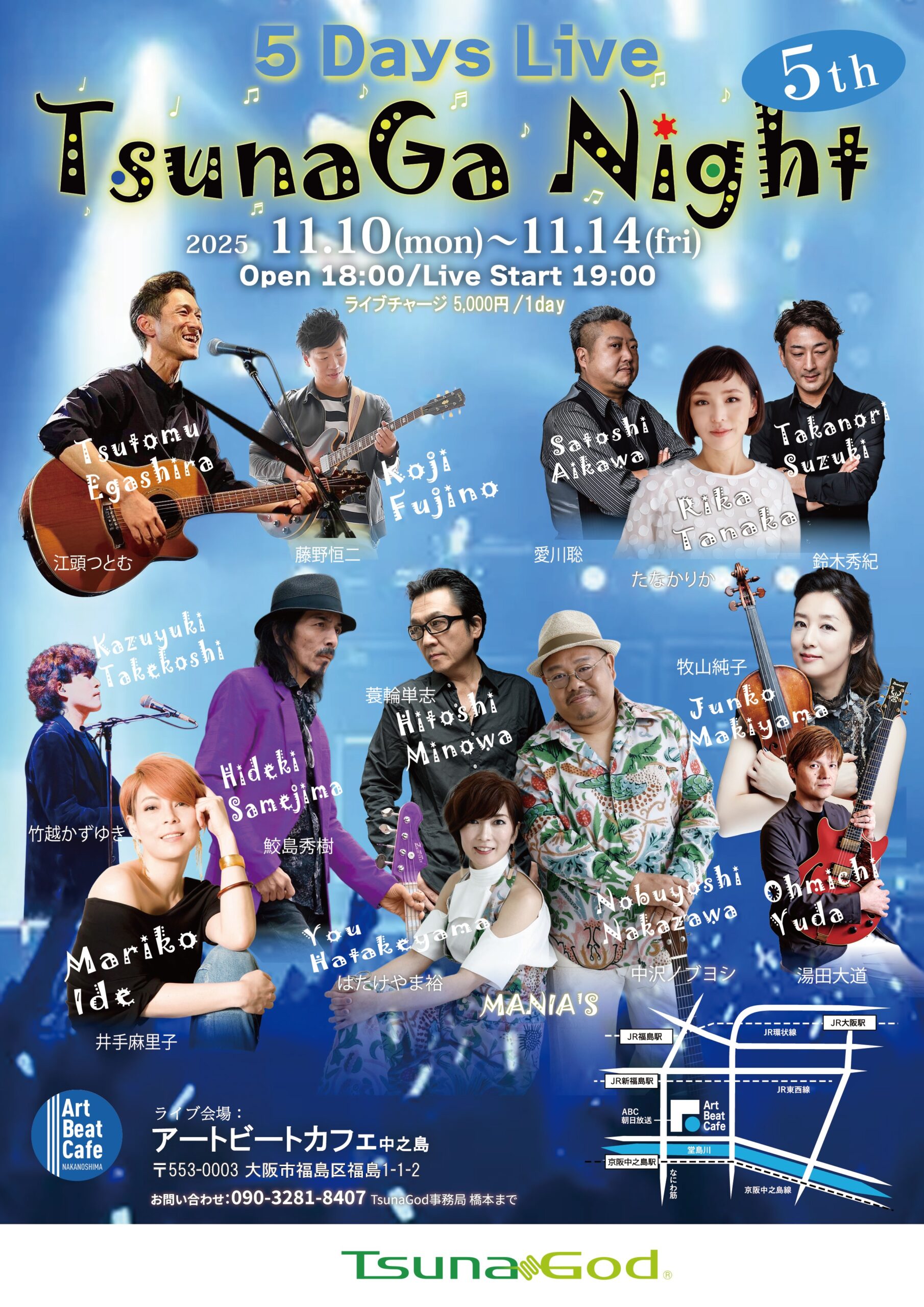 2025 11.13[thu] Tsuna Ga Night 5th ~第4夜~ 江頭つとむ/藤野恒二 ARTIST 江頭つとむ(vocal guitar) 藤野恒二(guitar) INFO SOLD OUT OPEN 18:00 START 19:00 PRICE ¥5,000 VIEW MORE